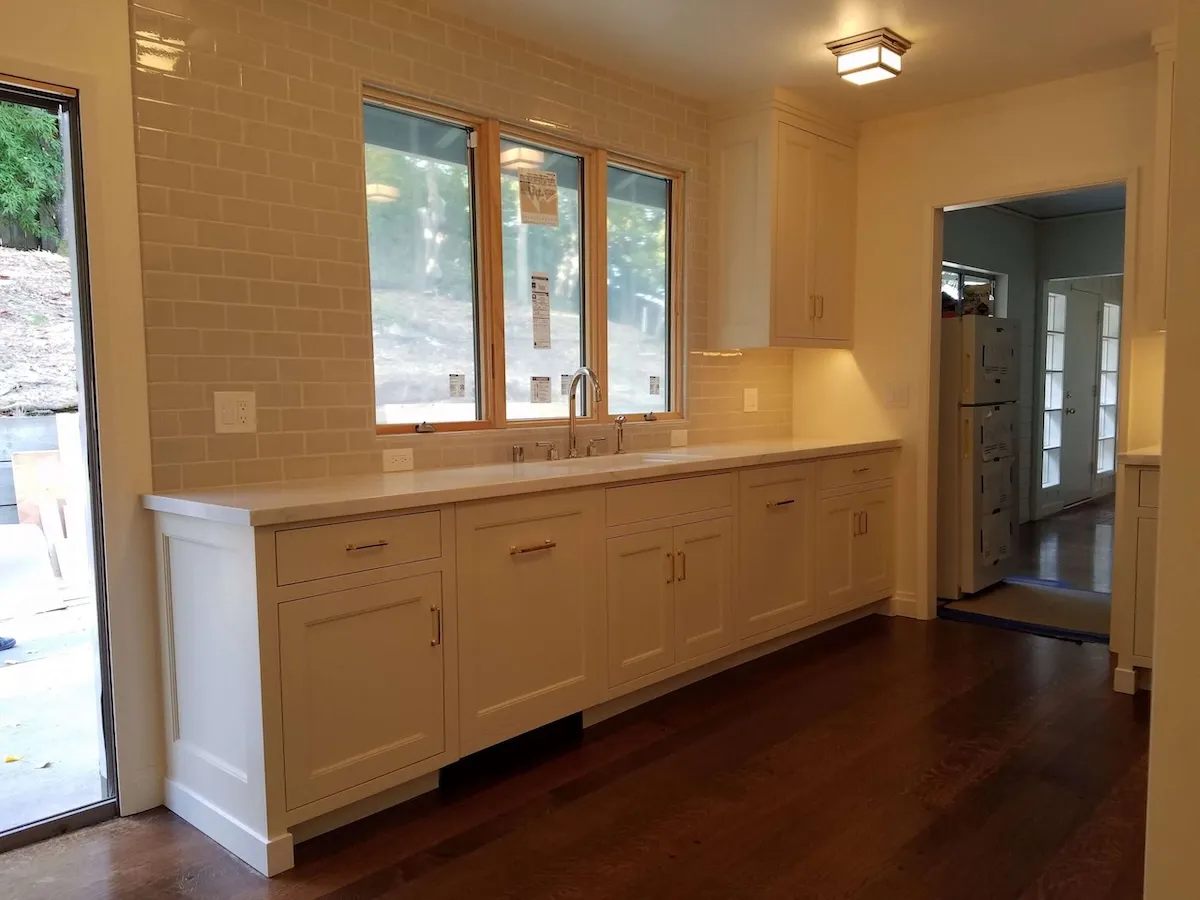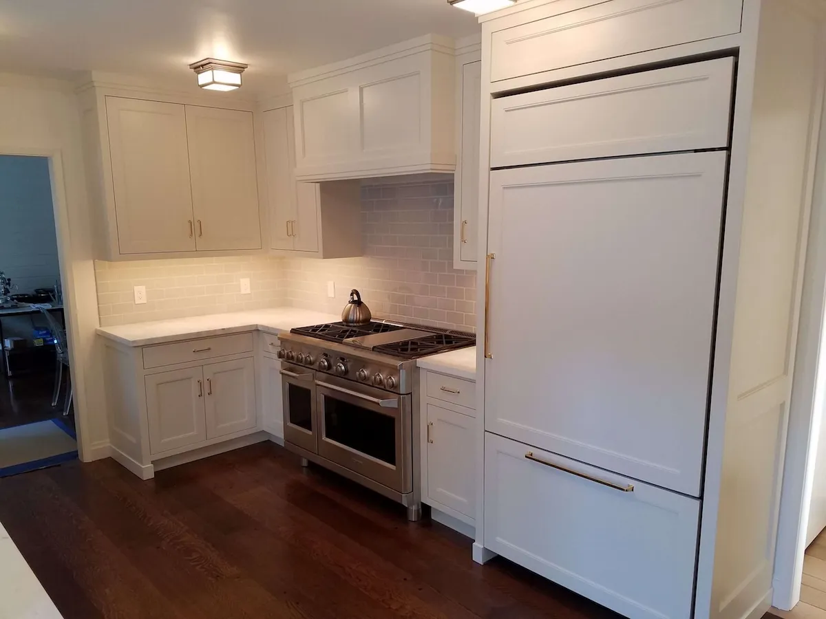 Elegant cabinetry: We installed exquisite white cabinets that offer ample storage and contribute to the kitchen’s airy feel.
